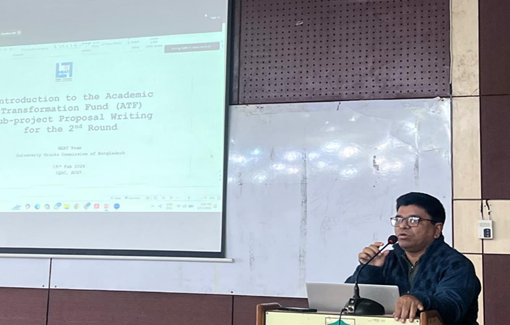 The Institutional Quality Assurance Cell (IQAC) of Ahsanullah University of Science and Technology successfully organized a comprehensive seminar titled “Academic Transformation Fund (ATF) Sub Project Proposal Writing” on Sunday, February 15, 2026. The seminar was held from 3:00 p.m. to 5:00 p.m. at the VC Seminar Room, Level-4, Block-D, AUST, with the objective of strengthening faculty capacity in developing competitive and effective ATF sub-project proposals. The seminar was attended by all Professors of the university along with Sub-Project Managers (SPMs) who had previously applied for the HEAT Project funds. The presence of senior faculty members and experienced project applicants ensured a highly interactive and knowledge-sharing environment. The session aimed to enhance participants’ understanding of the Academic Transformation Fund framework, proposal structure, evaluation criteria, and submission process.