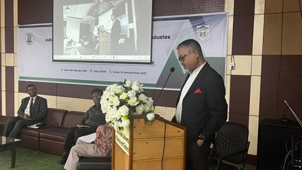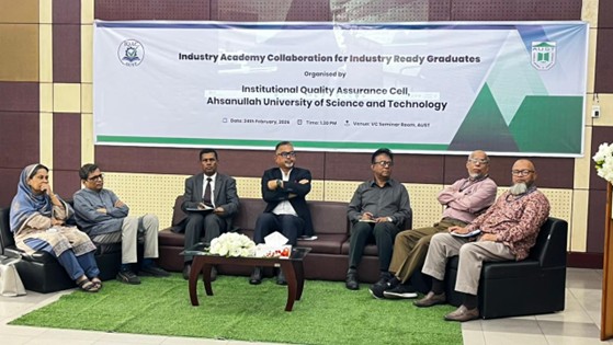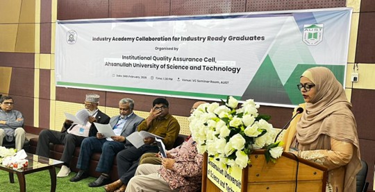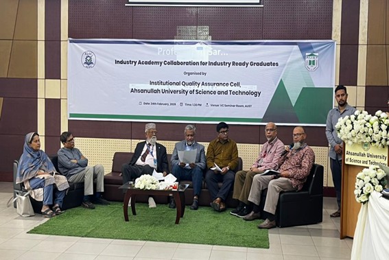 The Institutional Quality Assurance Cell (IQAC) of Ahsanullah University of Science and Technology (AUST) successfully organized a comprehensive seminar titled “Industry Academy Collaboration for Industry Ready Graduates” on Tuesday, February 24, 2026. The seminar was held from 1:30 p.m. to 3:30 p.m. at the VC Seminar Room, Level 4, Block D, AUST.