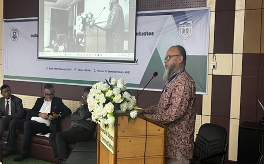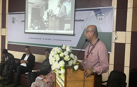Prof. Dr. Abdul Matin, Dean of the Faculty of Engineering at AUST, delivered a significant speech emphasizing the importance of enhancing practical knowledge in engineering education. In his address, he highlighted that while theoretical understanding is essential, it must be complemented by hands-on experience to produce competent, industry-ready graduates.