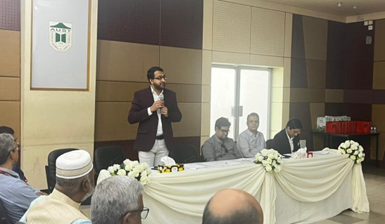 Prof. Dr. Mohammad Sarwar Morshed, Director of the Institutional Quality Assurance Cell (IQAC), AUST, extended a warm and cordial welcome to all participants, distinguished guests, and stakeholders present at the event. He expressed his sincere appreciation for their participation and highlighted the importance of such initiatives in strengthening academic excellence and professional development.