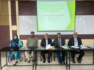 The Institutional Quality Assurance Cell (IQAC) of Ahsanullah University of Science and Technology (AUST) successfully organized a seminar titled “Professional Ethics and Compliance for Sustainable Office Operations” on Thursday, January 22, 2026, from 2:30 p.m. to 4:30 p.m. at the VC Seminar Room, AUST. The seminar was attended by Officers, Assistant Administrative Officers, Upper Division Assistants and Lower Division Assistants. The seminar was arranged as part of IQAC’s continuous initiatives to promote ethical practices, institutional compliance, and sustainable administrative culture within higher education institutions.